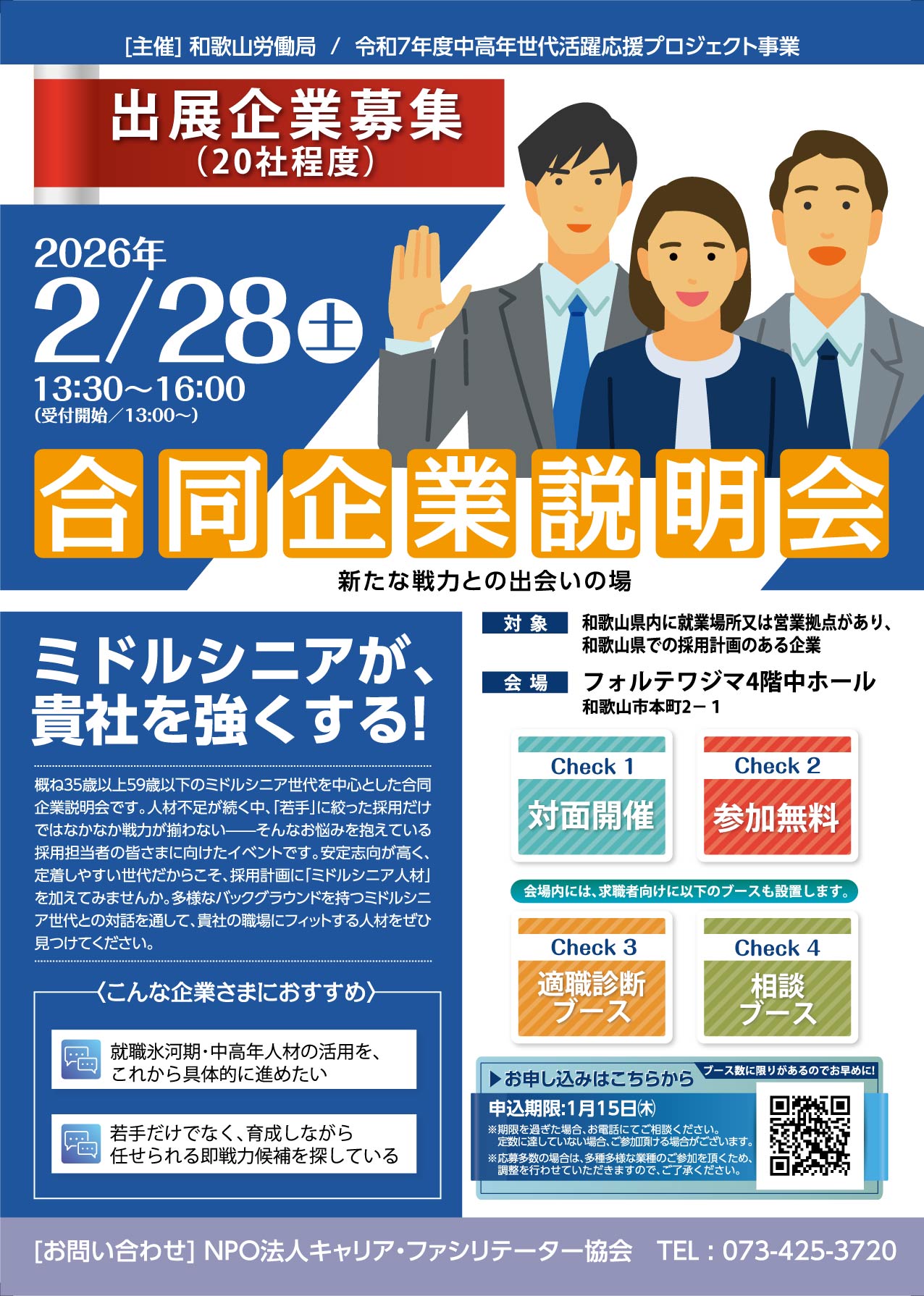 「ミドルシニア世代にむけた合同企業説明会」は、就職氷河期・ミドルシニア世代を対象にした、対面型の就職活動イベントです。